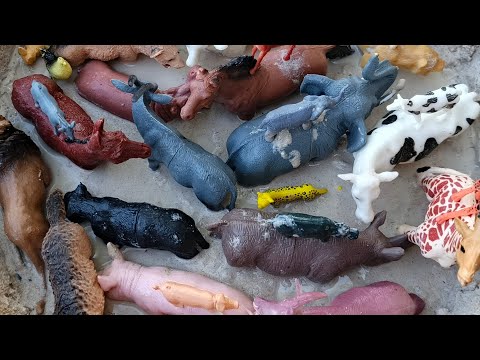 Animals trapped in deep pits: cows, tigers, elephants, hippos, lions, goats, horses...