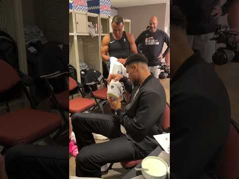 Giannis can't believe Tacko Fall's shoe size 😂