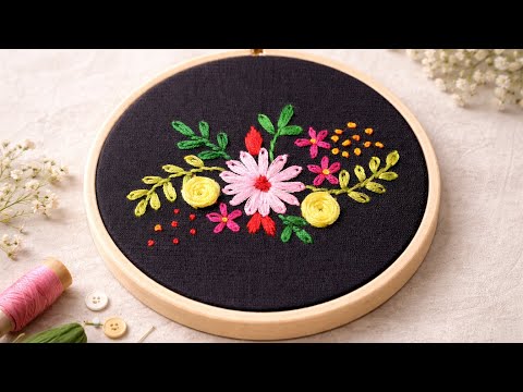 Easy Floral Embroidery Tutorial | Lazydaisy, Woven Rose, Satin & French Knot Stitches