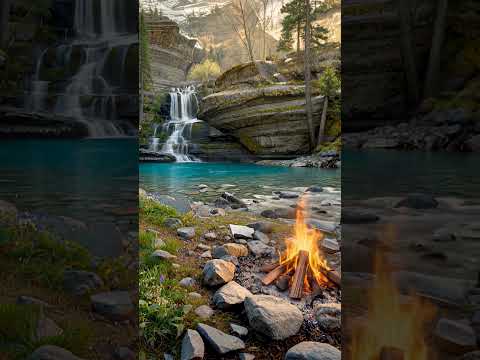 Peaceful Turquoise River Waterfall Canyon Campfire 3 Hours Relaxing Nature Sounds