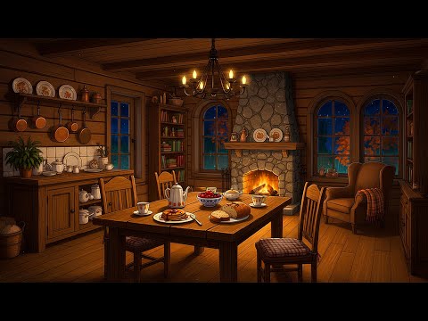 Rainy Night in Cozy Autumn Reading Nook Ambience ๐ Slow Jazz with Rain & Fireplace Sounds for Sleep