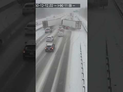 Major Highway Pile-Up Caught on Traffic Cam During Severe Winter Storm | Real Ice-Road Crash Footage