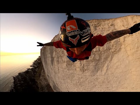 Base jumping off Beachy head in Sussex.