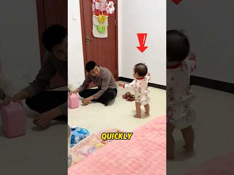 The happy moment of the baby's first walk❤️#familylife #love
