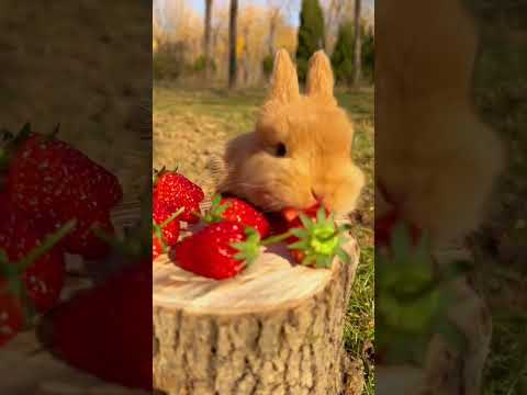Baby Bunnies Eating Strawberries ππ | Cute Bunny ASMR Shorts #cute #rabbit #cuteanimals