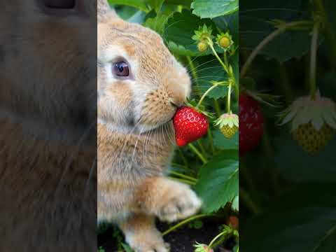 π Cute Bunny Eating All Strawberries π | Adorable Garden Moment π° #rabbit #cutebunny #bunnyeating