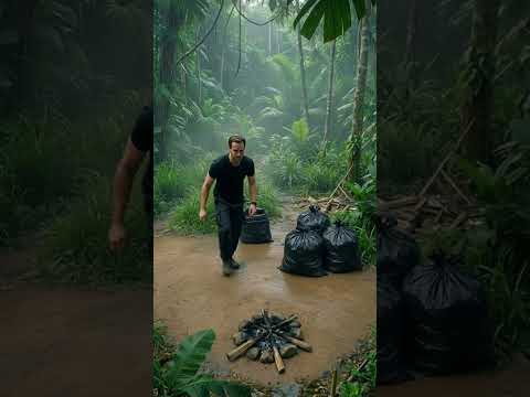 Hidden Jungle Build! Girl Creates a Massive Bamboo Shelter 🏕️#bamboo #craft #shorts #shortsfeed