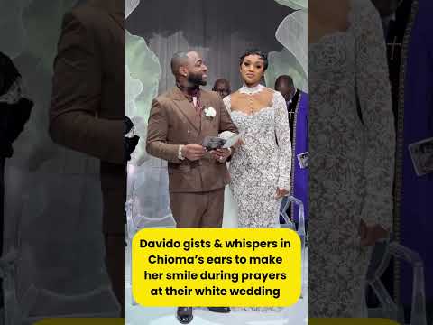 Davido Gists,Whispers In Chioma’s Ears As She Holds Back Laughter At Their White Wedding