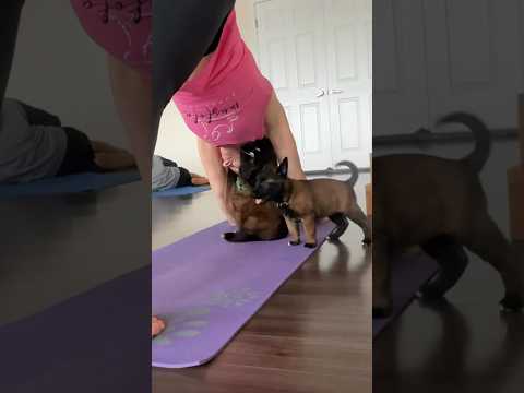 Innocent faces hide big surprises! Watch Belgian Malinois puppies bring joy to our yoga class!