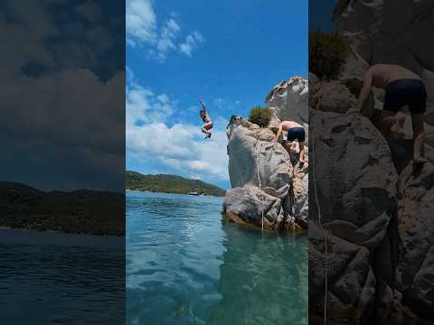 Cliff Jump! Watch this insane dive into crystal-clear water! #shorts