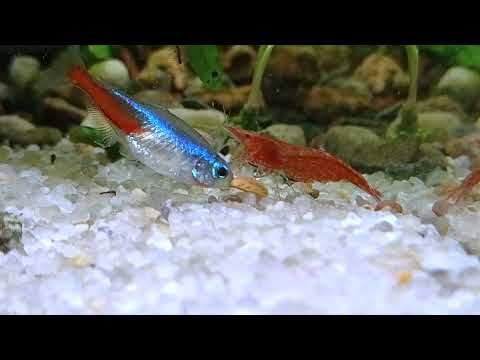 Greedy cherry shrimp vs neon tetra