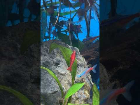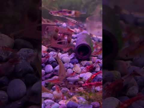 🦐 my pet shrimps getting along with guppies, neon tetras and assassin snails 🐌 #redcherryshrimp