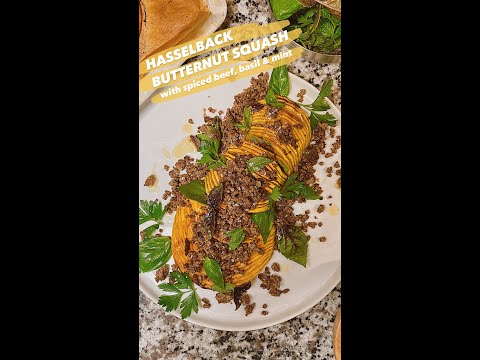 Hasselback Butternut Squash with Spiced Beef, Basil and Mint