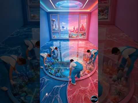 Yin Yang Epoxy Floor Transformation 🤯 Blue vs Pink Room #epoxy #shorts