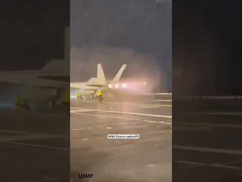 F-35 Takeoff from Aircraft Carrier in Heavy Storm