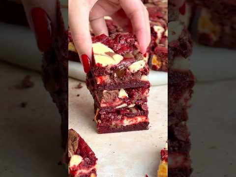 Red Velvet Cheesecake Brownies #dessert #asmr