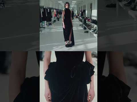 In fittings: Sihana wears a draped slashed velvet dress