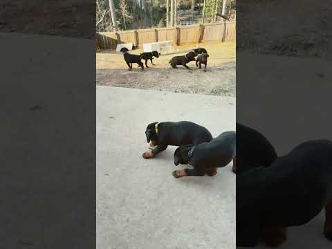 Bruno is still afraid to pass the puppies #puppy #doggielife #doberman #dogs