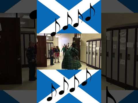 Students treated to bagpipes of former student at St. Andrews Senior Public School in Cambridge, ON.