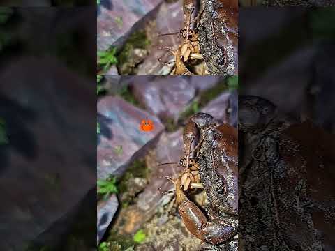 Bombardier beetle risks food fight with red-claw mountain crab #bombardier #crab #nature #insects