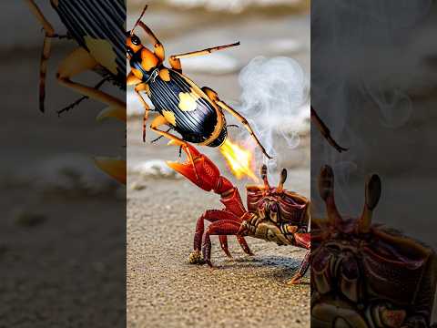 Bombardier Beetle's Fearsome Defense Against Giant Crabs #bombardier #crabs #insects