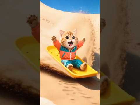 Cat's Dune Slide Fun #ai #cat #catshorts #catlovers #cute #funny #dune #slide #sandboarding
