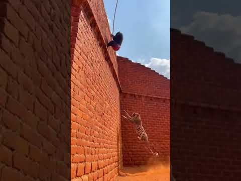 Leopard Chases Mandrill in Alley - Mandrill Escapes Using ROPE! 🐒