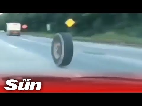 Loose truck tire rolls and bounces down highway | luckily no one injured | truck wheel