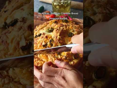 Crispy Crust, Cheesy Goodness! Try this No-Knead JalapeƱo Cheddar Bread. #peasant#jalapeƱo#bread