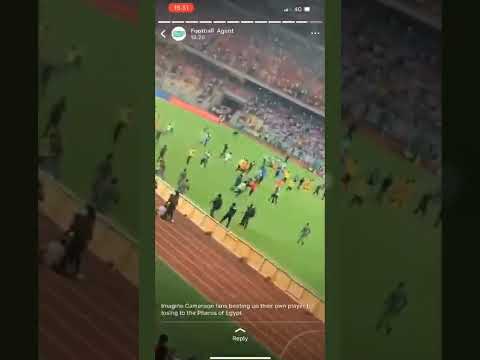 Cameroon’s Vincent Aboubakar fighting for his life,fans beat players after loss to Egypt.#afcon