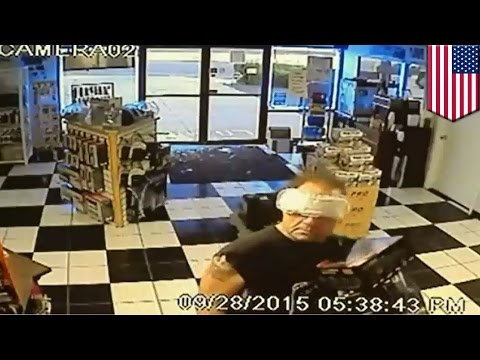 Ce voleur stupide tente d-exploser la porte vitrée d-une boutique : la suite est très drôle...!