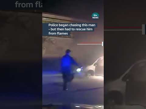 Police began chasing man before having to rescue him from flames #itvnews
