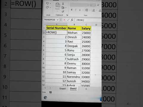 Automatic Serial Numbers in Excel #excel #exceltips #exceltutorial #msexcel #microsoftexcel #shorts