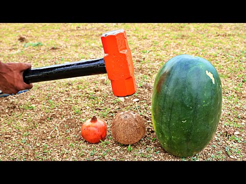 DESTROYING WATERMELON ANAR COCONUT WITH BIG HAMMER | DESTROYING FRUITS |