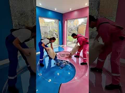Yin Yang Epoxy Floor Transformation π€― Blue vs Pink Room #epoxy #shorts
