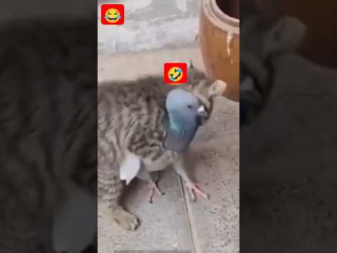 cute cat and Pigeon fighting with funny π€£#shorts #trending
