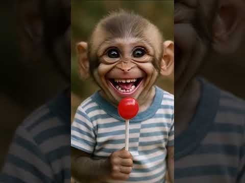 Baby Monkey Tastes a Lollipop... Then Bursts Into Laughter! #animals #monkey #shorts