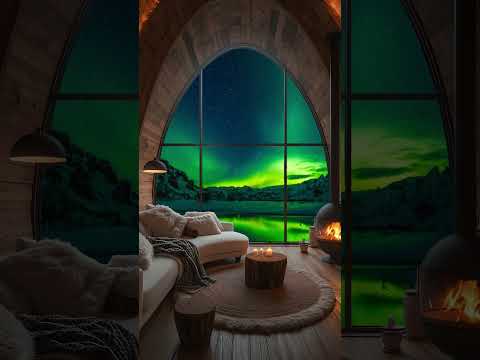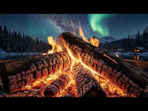 Northern Lights Ambience | Crackling Fire Sounds