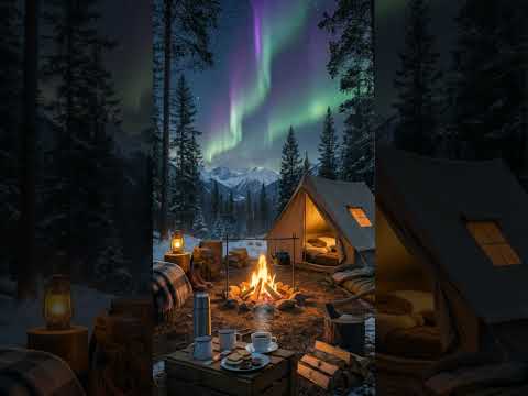 Aurora Campfire Night ✨🔥 Cozy Winter Ambience