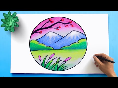 Scenery drawing easy - beautiful circle drawing - nature drawing #shorts #drawing