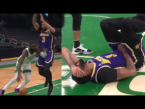 Anthony Davis gets elbowed in the nuts by Jaylen Brown