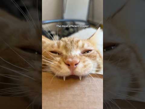 We donβt need a stapler at home anymore π #cat #funny #pets #animals #useful #stapler