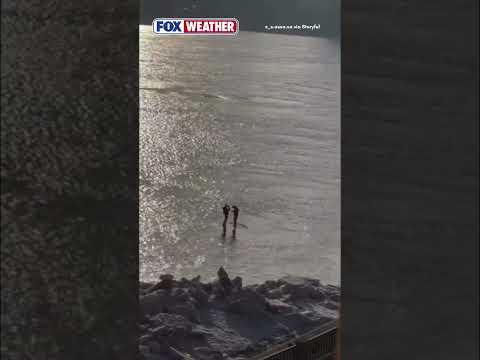 RISKY ADVENTURE 🧊: Two men in St. Petersburg, Russia, Were Spotted Standing On A Thick Piece Of Ice