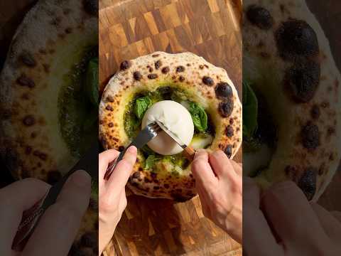 Pistachio Pesto Pizza with Burrata #pizza#homemade#biga#recipe#asmr#satisying#shorts#sourdough