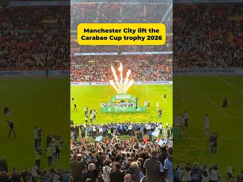 Manchester City lifting the Carabao Cup Trophy 2026 after beating Arsenal 0-2 Manchester City