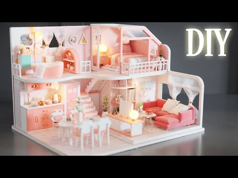 DIY Miniature Dollhouse Kit || Pinellia Time - Pink Apartment - Relaxing Satisfying Video