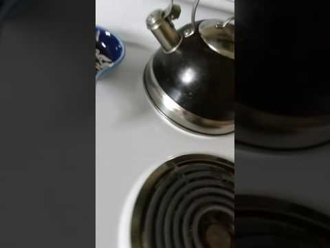 The mettal kettle boils and starts whistle very loud
