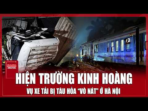 Hiện trường tàu hoả húc văng xe tải cả trăm mét ở Hà Nội khiến 2 người t.ử vo.ng | SKĐS