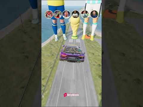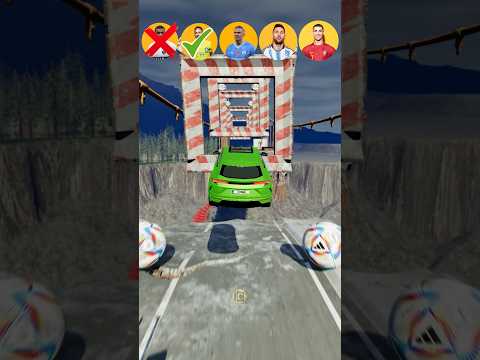 🚗CR7 vs Messi vs Mbappe Jump Challenge ⚽️ #beamngdrive #shorts #ronaldo #messi