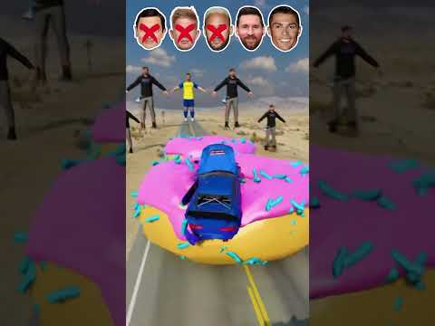 Cristiano Ronaldo vs Lionel Messi vs Kylian Mbappé vs Donuts Car Jump Challenge #beamng #cr7
